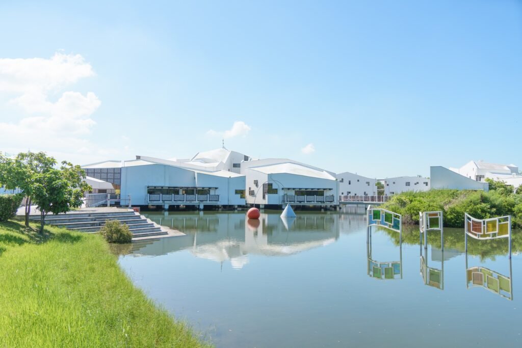 跟夥伴們見了面後,與租車老闆打過招呼後,騎著機車前往第一站「台江國家公園」,從喧囂的台南車站到沿途養殖的漁塭,沿海一路騎向目的地,驚奇地發現台南沒有想像中的酷熱,相較於大樓密集、地形盆地長期無風的台中,反而是台南的海風顯的清爽舒適。由於週一的休館,園區呈現一片寧靜,卻又給我們機會去挖掘這片水域的滄海桑田。